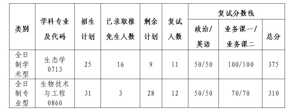 二、各学科专业复试分数线